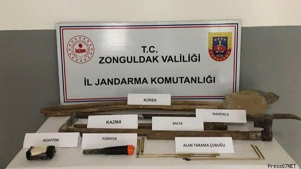 Zonguldak İl Jandarma Komutanlığı ekiplerince Devrek ilçesinde kaçak kazı yapan 4 kişiye operasyon düzenlendi. Alanda inceleme yapan jandarma ekipleri, 1 adet pointer, 4 adet bakır alan tarama çubuğu, 2 adet kürek, 2 adet kazma, 1 adet manivela, 1 adet balta, 1 adet adaptör ile birlikte suçüstü yakalandı.
