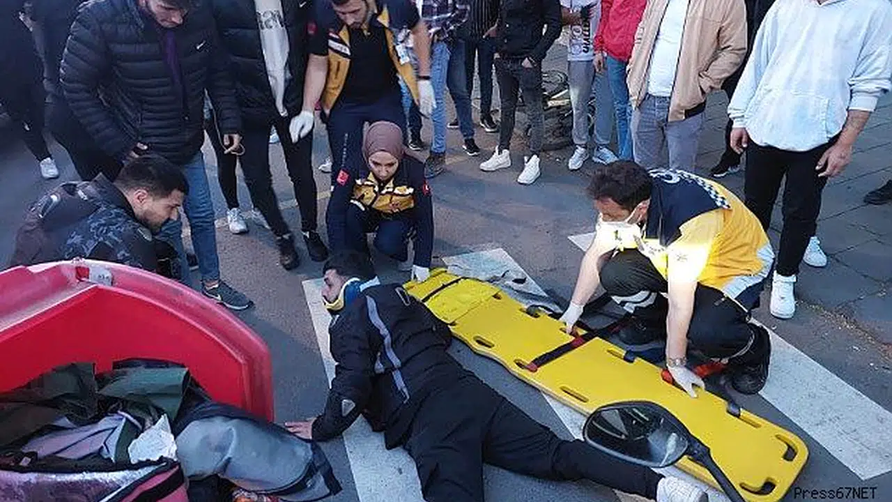 Edinilen bilgiye göre sahil yolunda sol şeritte hareket halinde olan C.A. hakimiyetindeki 67 ACF 257 plakalı Mazda markalı otomobil sürücüsü aynı istikametten sağ şeritte gelen A.B.K.’nin kullandığı 34 GCS 468 plakalı motosikleti fark etmedi. Sağ şeride geçiş yapan otomobil sürücüsü C.A., dikkatsizliği nedeniyle moto kuryeye çarptı. Meydana gelen kazada kurye A.B.K. yaralandı. Olayı gören çevredeki vatandaşlar yardıma koşarak 112 Acil Servisi ve polisi arayarak yardım istedi. Yerde yaralı halde yatan moto kurye sürücüsü olay yerine gelen ambulansla hastaneye kaldırıldı.
