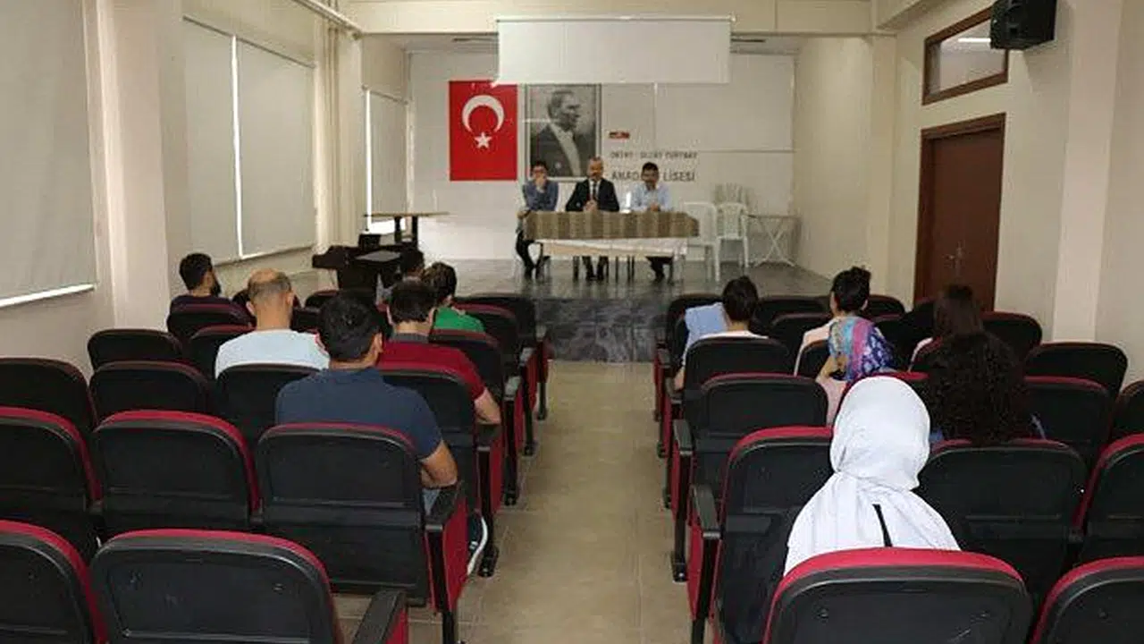 Oktay ve Olcay Yurtbay Anadolu Lisesi'nde gerçekleşen bilgilendirme toplantısına İlçe Milli Eğitim Müdürü İsmail Baş ve Şube Müdürü İsmail Çelebi ile ilkokul, ortaokul ve liselerde görev yapan rehber öğretmenleri katıldı. Bilgilendirme toplantısında tercih de bulunacak öğrencilerin yetenek, ilgi, ihtiyaç, kişilik özelliklerinin dikkate alınması ve Milli Eğitim Bakanlığı’nın yayınladığı kılavuzda yer alan standartlar doğrultusunda sürecin yönetileceğinden bahsedildi.