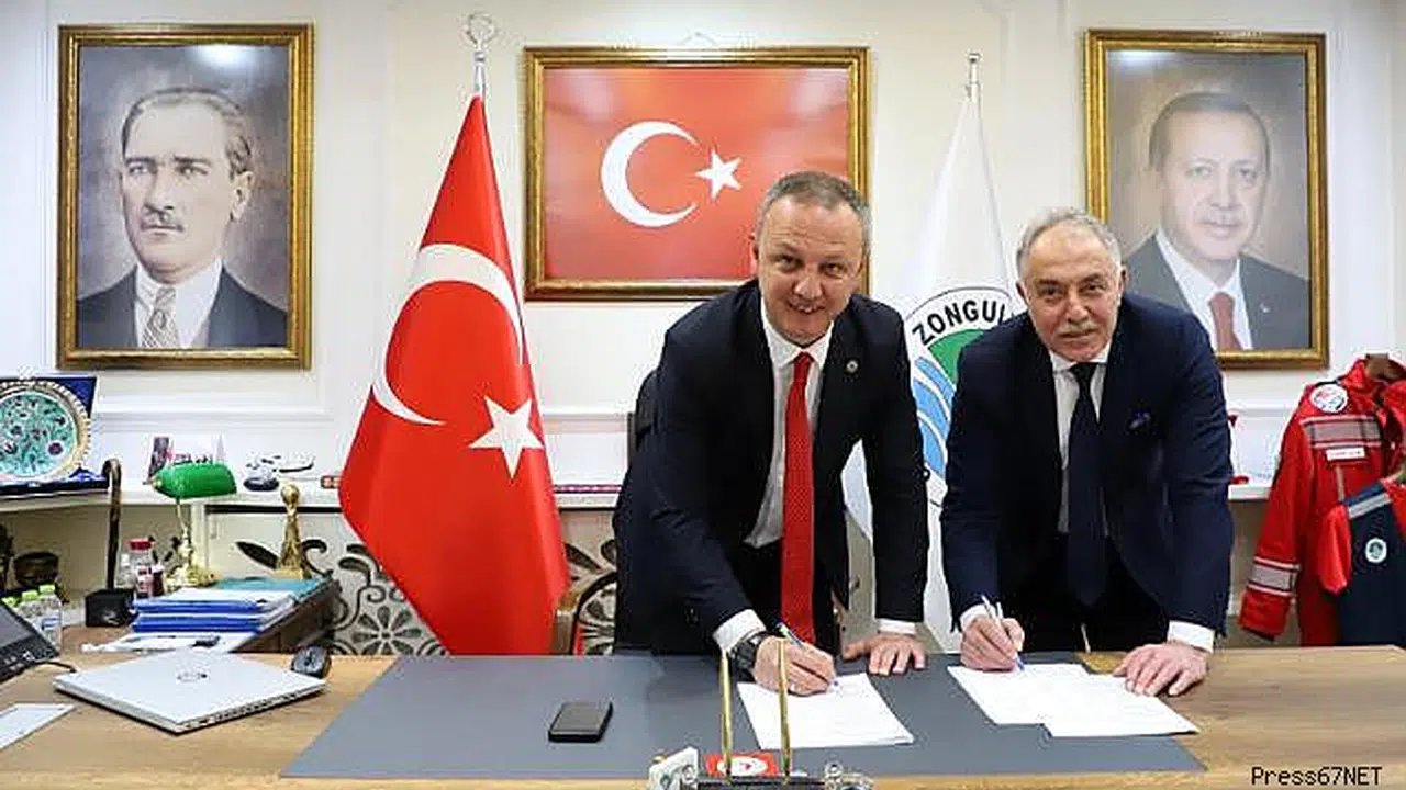 Zonguldak Belediye Başkanı Ömer Selim Alan, belediye şirket işçisini ilgilendiren toplu sözleşmeyi Belediye-İş Sendikası Başkanı Osman Karataş ile imzaladı.