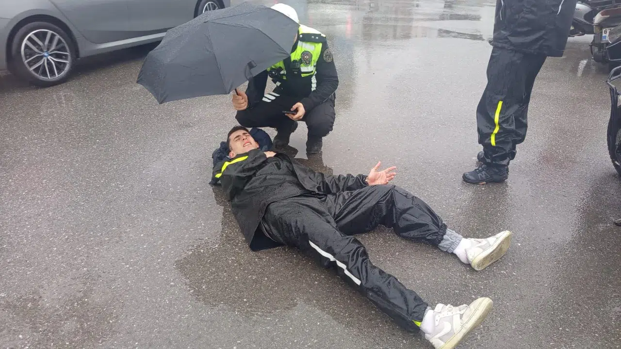 Zonguldak’ın Ereğli ilçesinde meydana gelen trafik kazasında yaralanan motosikletli kurye, olay yerine gelen trafik komiserinin sergilediği örnek davranışla dikkat çekti.