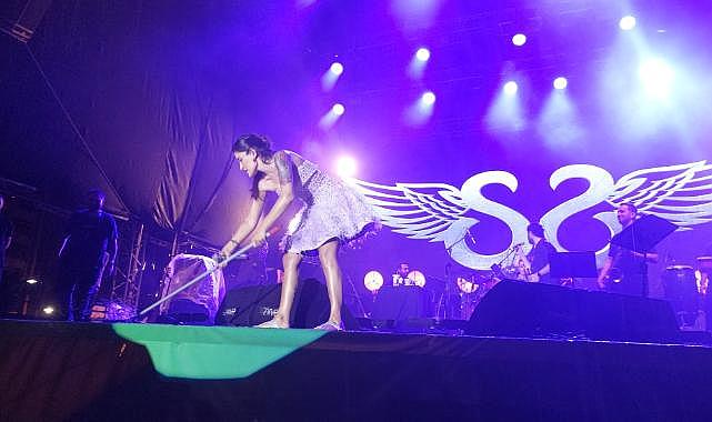 Yoğun yağış nedeniyle sahnede biriken su zaman zaman görevliler tarafından temizlendi. Ünlü sanatçı, düşme endişesi üzerine ayakkabılarını çıkartarak terlik giymek istediğini söyledi. Sanatçı, bir ara eline aldığı çek pas ile sahnesini temizledi. Hayranları da “Melek” tezahüratı yaparak ünlü sanatçıya destek verdi.