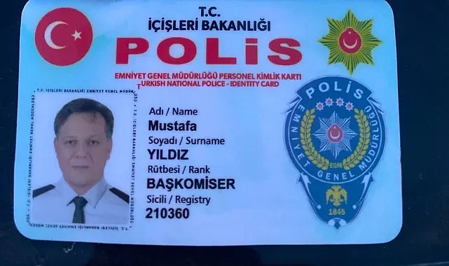 Kartı inceleyen ekipler, kart üzerinde 'Başkomiser' yerine 'Başkomser' yazdığını ve Turkish National Police ibaresinin de yamuk yazıldığını tespit etti. Araçta arama işlemi gerçekleştiren ekipler, başkomiser rütbesi takılı olan polis yeleği ve 2 sahte polis kimliği buldu.