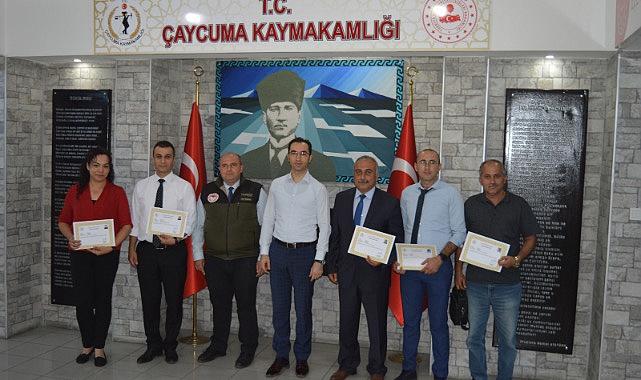 Çaycuma Kaymakamı Mehmet Göze, şap hastalığında mücadele vererek özverili çalışan; Çaycuma İlçe Tarım ve Orman Müdürü Emrah Gül, Veteriner Hekim İlker Erkan, Veteriner Hekim Hale Şengül ve Veteriner Sağlık Teknikeri Ramazan Kafkas’a ‘Başarı Belgesi’ takdim edildi. Ayrıca personel Teknisyen Ahmet Demirsoy ve Teknisyen Adem Yol' a hayvan sağlığı personeline sahada vermiş oldukları desteklerinden dolayı da başarı belgesi verildi.