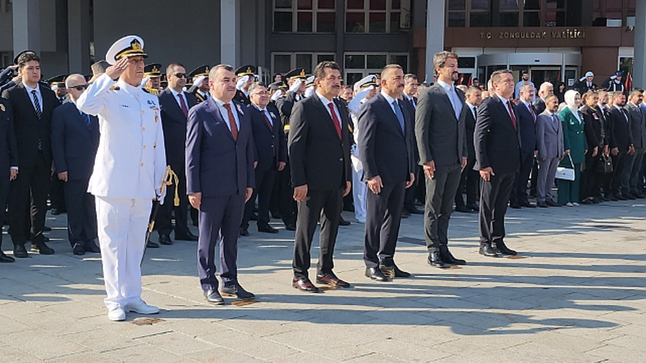 Saygı duruşunda bulunulmasının ardından İstiklal Marşı okundu. Tören Zonguldak Valisi Osman Hacıbektaşoğlu, Zonguldak Garnizon vekili Deniz Albay Mustafa Güzel ve Belediye Başkanı Tahsin Erdem, valilik makamında tebrikleri kabul etti.