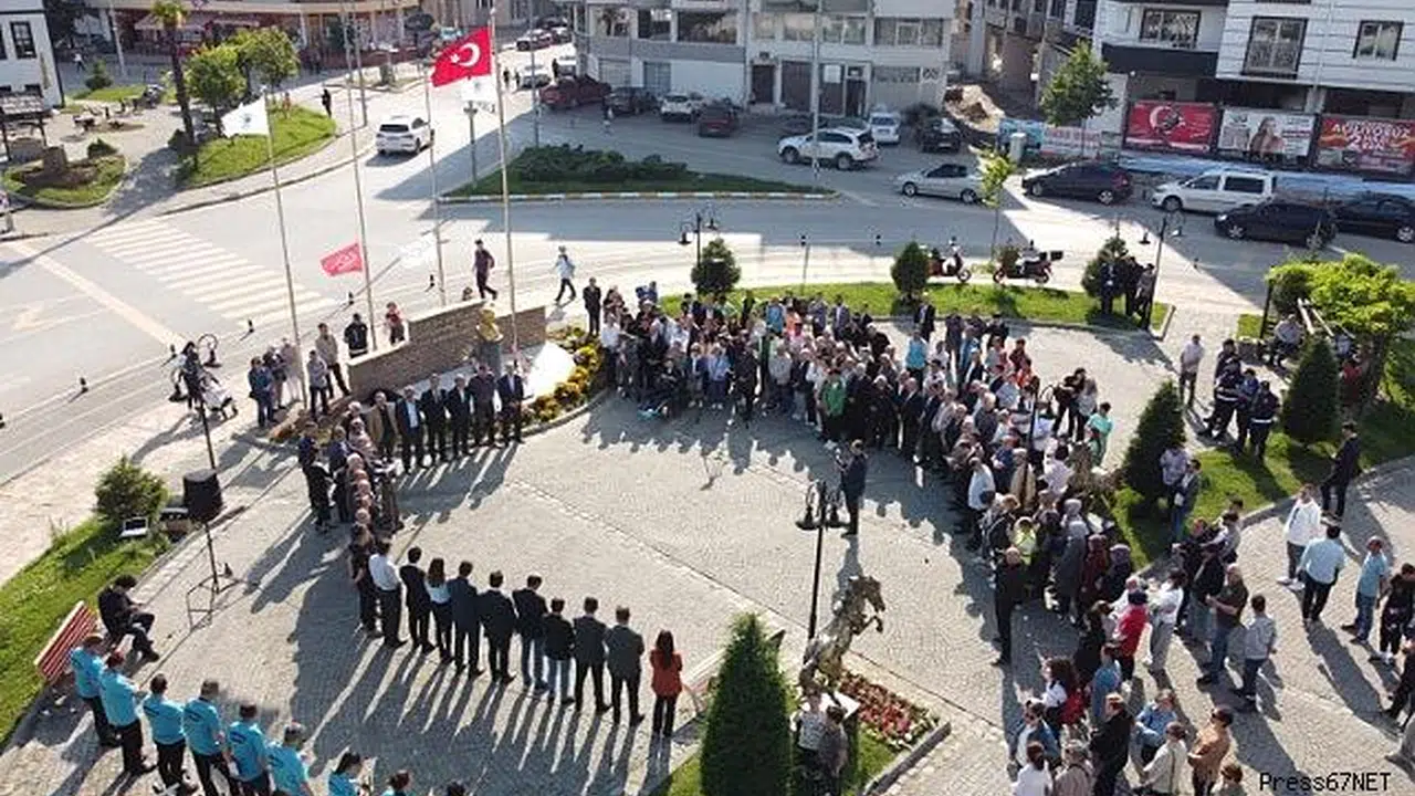 Çaycuma Belediyesi bandosunun mini bir konser sunup, Çaycuma Belediye Belediyesi Halkoyunları Topluluğu’nun bir gösteri yaptığı tören saygı duruşu ve İstiklal Marşı ile başladı. Çaycuma Belediyesi hizmet binası önünde yapılan törene, Perşembe Belediye Başkanı İsmail İnam, Bakacakkadı Belediye Başkanı Oktay Albuz, Saltukova Belediye Başkanı Alim Genç, önceki dönem Zonguldak Belediye Başkanı Muharrem Akdemir, önceki dönem Karapınar Belediye Başkanı Ahmet Aydın, Sosyal Hizmetler Merkezi Müdürü Tuncay Ünlütürk, İlçe Sağlık Müdürü Emrah Doğan, Çaycuma Mal Müdürü Şenol Civak, CHP Çaycuma İlçe Başkanı Fahri Diler, Gelecek Partisi Çaycuma İlçe Başkanı Şenol Cin, Çaycuma Esnaf ve Sanatkarlar Odası Başkanı Hayri Kandemir, Ziraat Odası Başkanı Rıza Çapkın, Kent Konseyi Başkanı Tuğrul Dereli, İşçi Emeklileri Derneği Çaycuma Şube Başkanı Nizamettin Eyidoğan, Çaycuma Kalkındırma ve Güzelleştirme Derneği Başkanı Savaş Çiloğlu, belediye meclis üyeleri, muhtarlar, Çaycuma Belediyesi daire amirleri ve kalabalık bir vatandaş topluluğu katıldı.