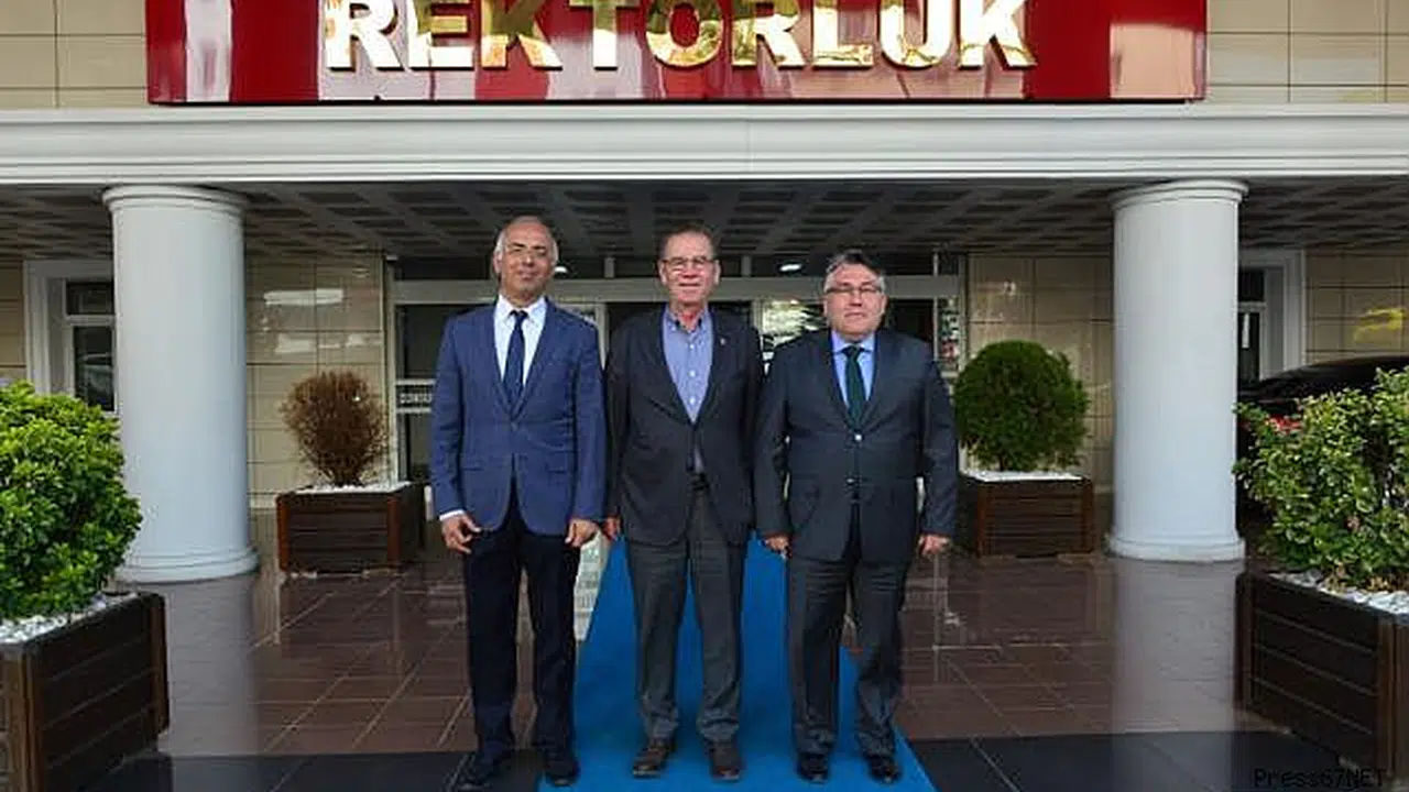 Ziyaretten büyük memnuniyet duyduğunu belirten Üniversitemiz Rektörü Özölçer, Eski Bakan Hasan Gemici’ye teşekkür ederek Devrek Bastonu takdim etti.