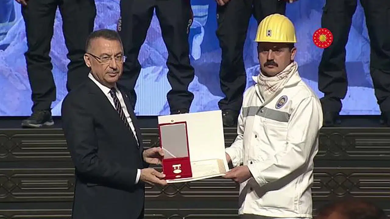 TTK adına TTK İşletme Müdür vekili Rıdvan Kapuağası ile TTK yeraltı işçisi Umut Güneş nişanları Cumhurbaşkanı Yardımcısı Fuat Oktay tarafından verildi.