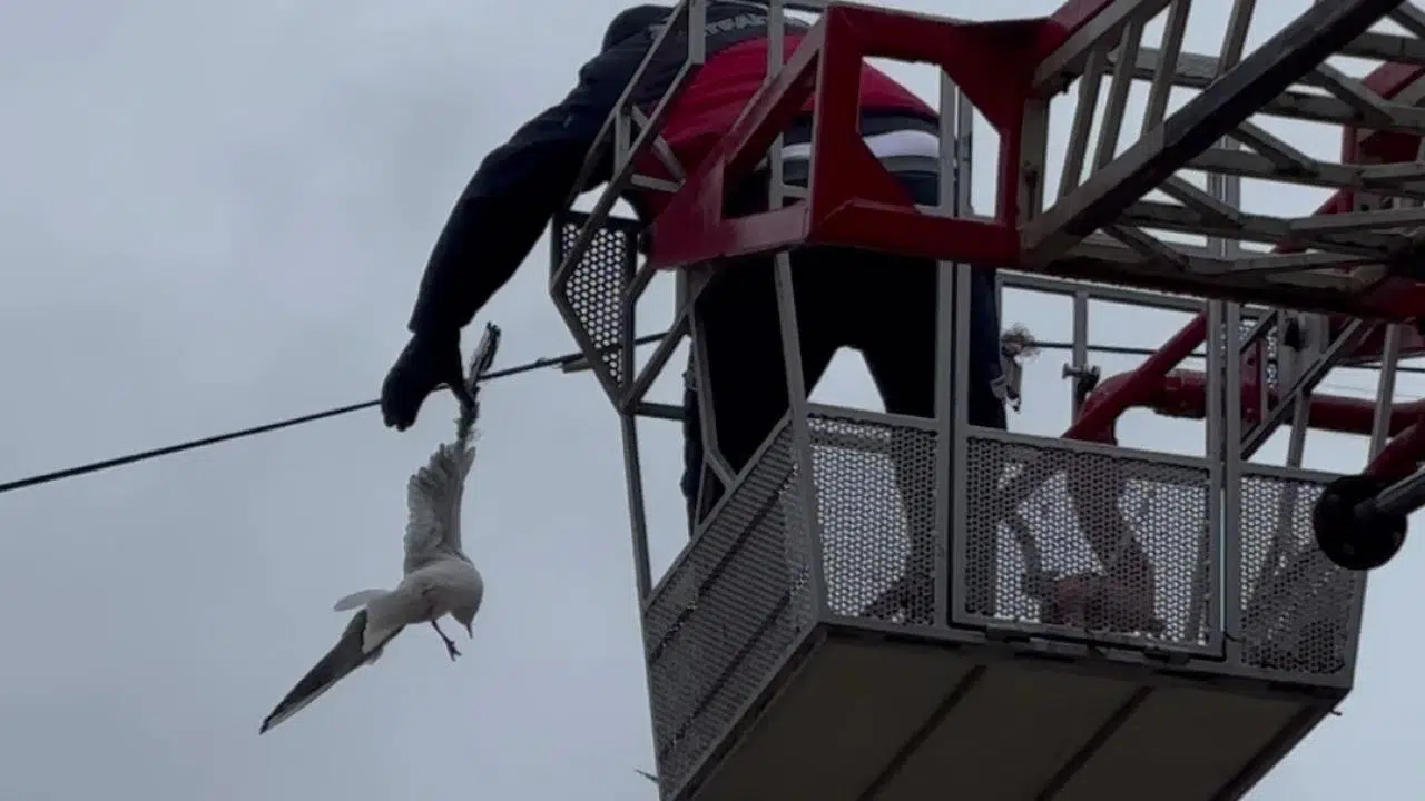 İhbar üzerine bölgeye Zonguldak Belediyesi İtfaiye Müdürlüğü ekipleri sevk edildi. Olay yerine ulaşan ekipler, korku dolu gözlerle bekleyen martıya zarar vermemek için titiz bir çalışma yürüttü. Ekipler, telleri dikkatlice esneterek sıkışan kanadı kurtardı.